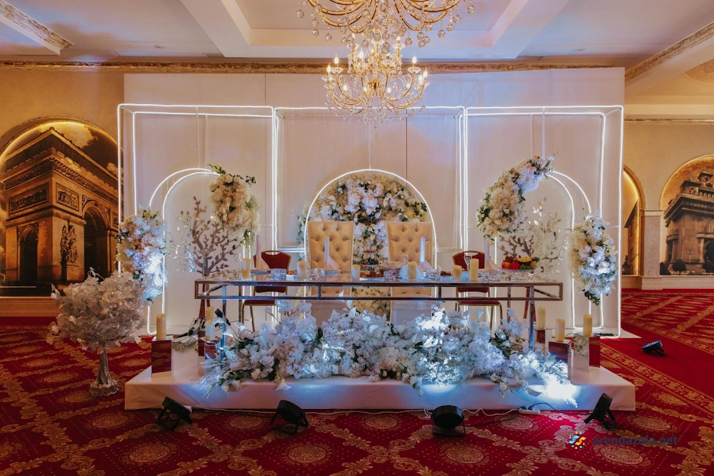В этом элегантном зале царит атмосфера торжественности и изысканности. Великолепный интерьер радует взгляд, а профессиональная организация мероприятий, вкусная еда, талантливые исполнители и внимательный персонал создают незабываемые впечатления. Гости наслаждаются изысканной кухней, приятной музыкой и безупречным обслуживанием, что гарантирует исключительно положительные эмоции.